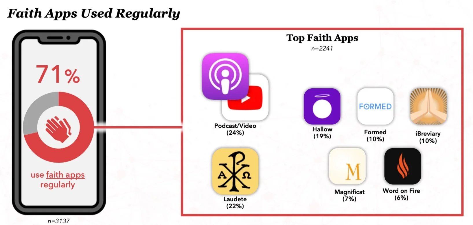 The study asked participants to answer some questions around their app usage, specifically around Catholic apps.